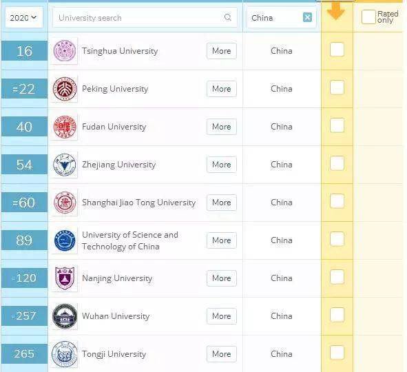 对比一下国内大学在2020年QS世界大学排名中的情况,可以发现,科廷大学的排名比国内武汉大学还要高出许多。