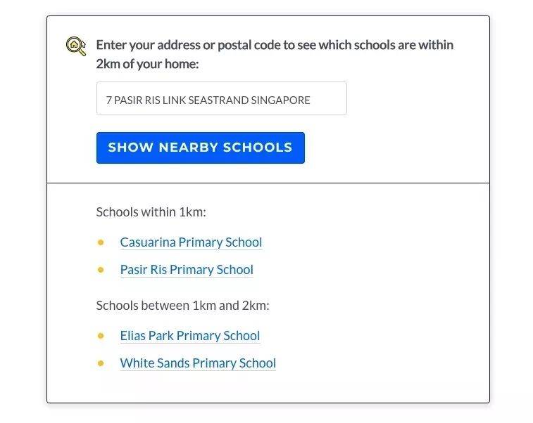 家长们(新加坡公民和永久居民)可以登陆Onemap.sg的网站查询学校和家之间的距离。输入准确的住址邮编进行查询,确保自家的位置处于可申请学校的范围内。