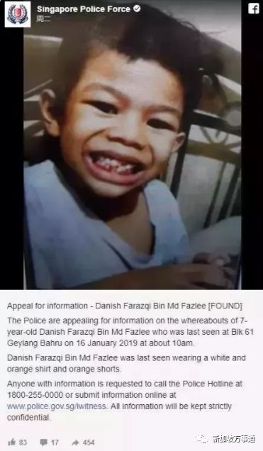 2019年1月16日下午,新加坡警察的Facebook发布了一份公告“一名自闭症儿童失踪”!