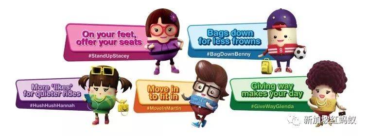 这五个“人物”是SMRT为了提倡优雅搭乘文化而设计出来的,每个人物都代表着乘客在搭乘地铁时应该遵守的规则。