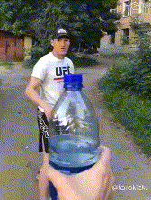 只见他先是站在原地,目测了一下自己与瓶子的距离