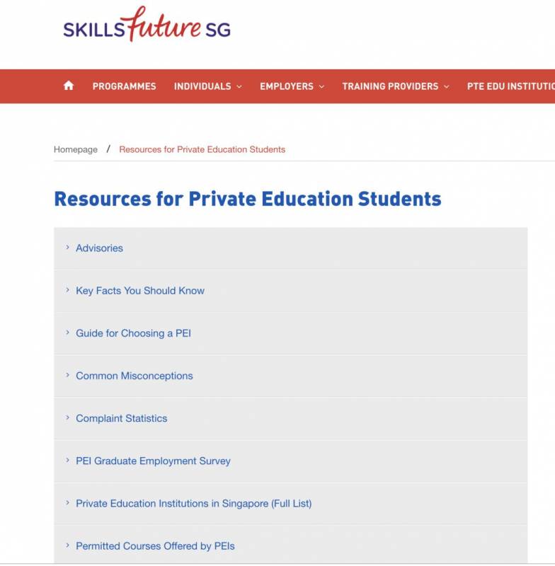 如想要查阅某间私立教育机构的教育信托状态,登陆SkillFuture官网查询即可:
