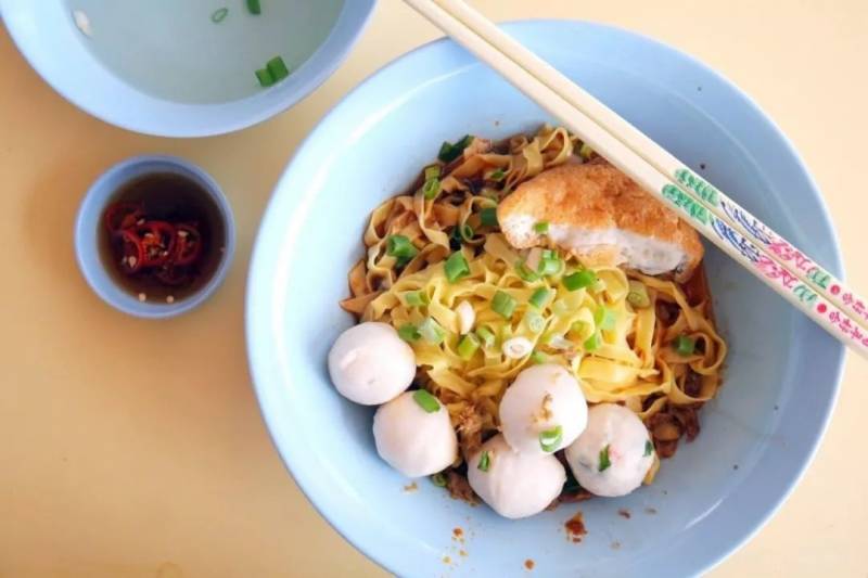 而面,通常会选Mee Pok, 面薄,就是薄面条。
