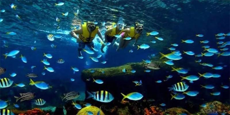 海洋馆:探索全球最大的水族馆、观赏超过800种海洋生物、仿佛已融入这缤纷世界里。