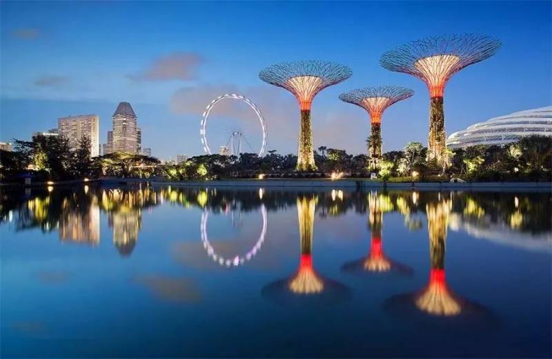 滨海湾花园是新加坡的新地标,曾赢得了2012年世界最佳建筑奖,由温室18棵超级树、文化遗产花园、植物世界、蜻蜓湖等组成。花园中的特色景观包括温室中的30米高人造瀑布以及数十米高的超级树垂直花园。