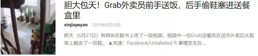 虽然过程只有短短十几秒,但是GrabFood几个大字却被监控记录了下来。就在5天前(6月27日),同样是一名Grab送餐员偷了顾客的鞋。