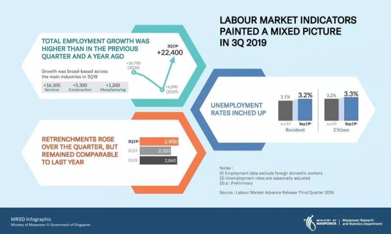 (10月24日),新加坡人力部发布了第三季劳动市场预估报告。新加坡第三季度的总就业人数增加超过2万人,比上季度和去年都要高。但裁员人数与失业率却均创10年新高!