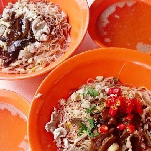 肉脞面Bak Chor Mee是潮州话,意思是肉末面条,原本是带有少许汤汁,现在多为干拌面,而且现在里面的食材已经非常丰富了,有香菇、鱼丸、贡丸、猪肉片、云吞、肉末等,每个店家东西可能会不一样。面有mee pok和mee kia的选择。