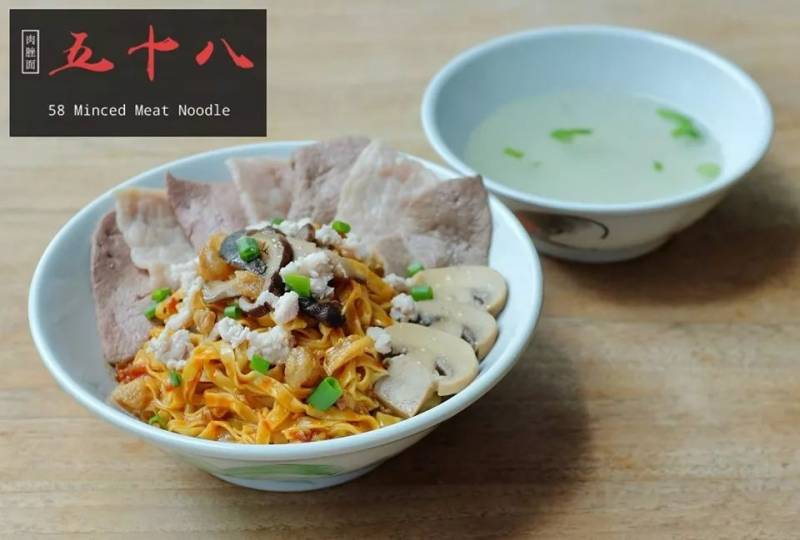 五十八肉脞面可谓历史悠久,要追溯于1973年。这里的酱料与其他店不太相同,更多的是带有辣味的番茄酱色泽,带有些许辣味,而少了醋味。