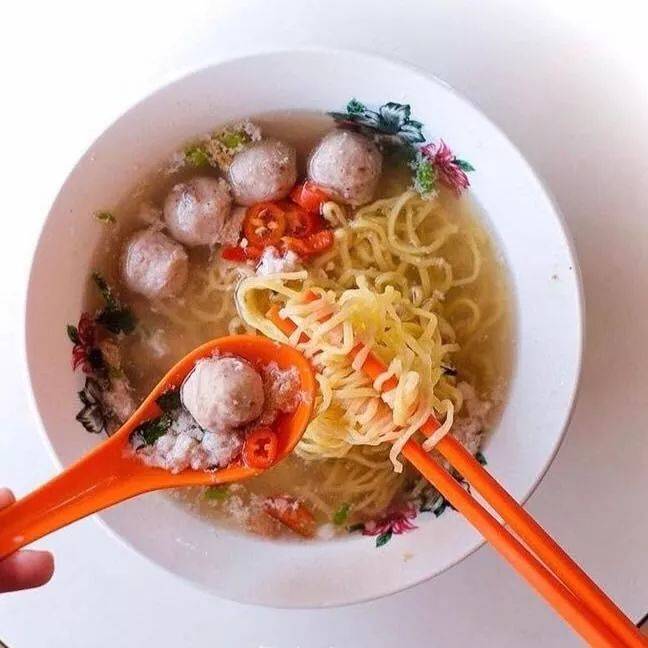 清淡的猪肉汤,清晰可见自制的鸡蛋面,丸子,肉末,和切碎的红辣椒。面条是弹弹的质感,和汤搭配的非常好。不要看这一碗看似清汤的面,实则非常有味道,还带着一丝丝甜味,君君好评认证。
