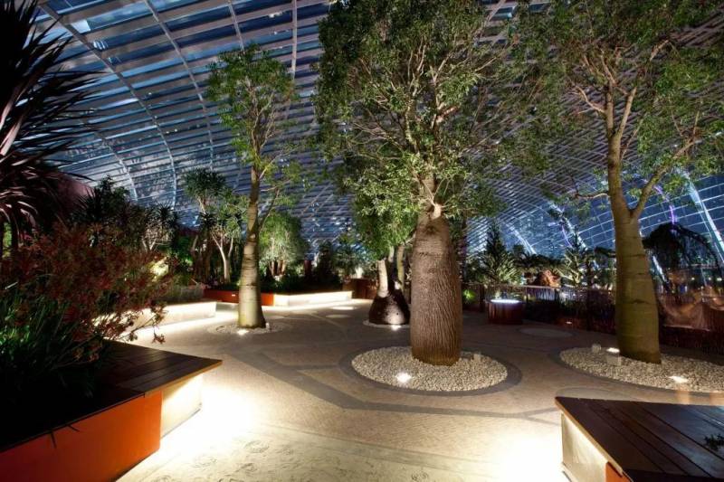 项目是新加坡最大的海滨发展景观项目,由国家支持。花园有两个大温室,一个是荫凉干爽的环境,一个是潮湿荫凉的环境,还有众多主题园,植物园,里面种植著来自世界各地的成千上万植物。