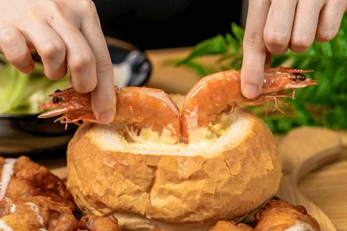 挂在面包上的大虾是炸过的,外面香脆内里紧实,口口生香,爱吃海鲜的朋友一定不要错过!啖啖肉的炸鸡,肉质嫩化!