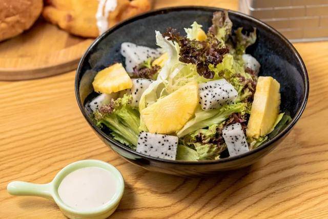 店家还贴心准备了一份沙拉,先吃白咖喱芝士,再吃上一口新鲜蔬果完美解腻!