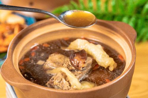 肉眼可见的汤料,标配的大肋排+大花胶,还有药材、香菇、枸杞,真材实料让整个肉骨茶口味层次瞬间up!