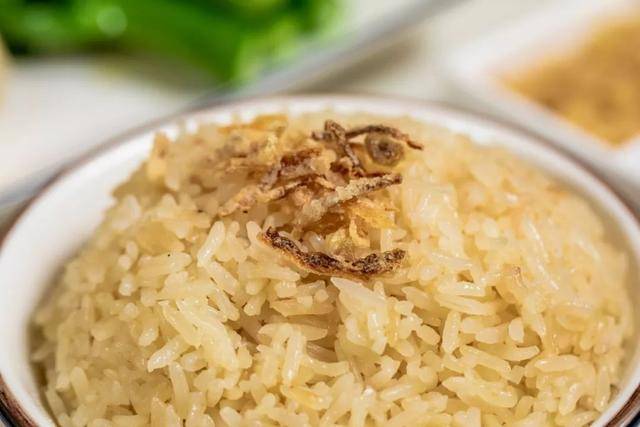 经过一轮繁琐的步骤后,再撒上姜葱酥,一碗热辣辣的饭才算完成!每一粒米饭都晶莹剔透,色泽饱满!阿lam已经忍不住要吃上一口了!