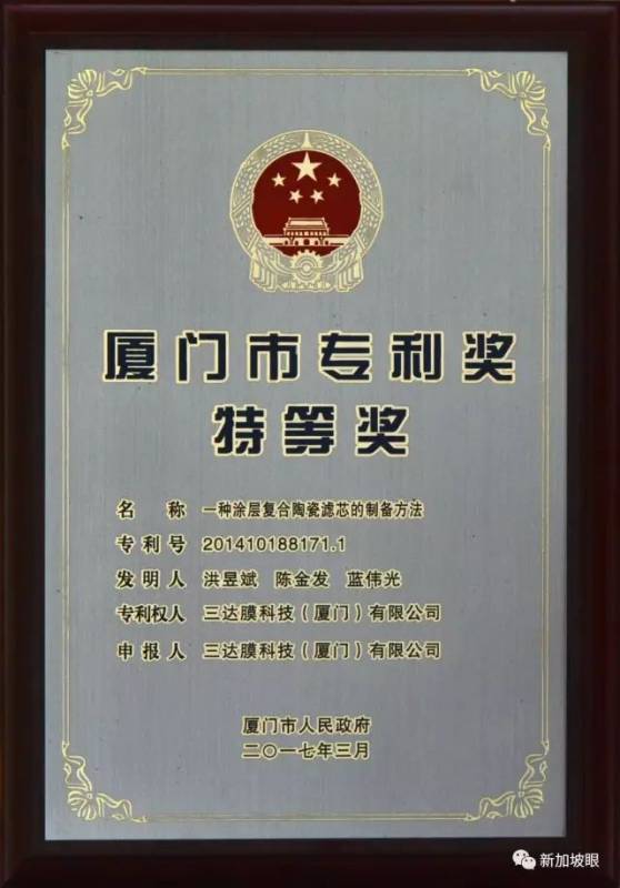 叙说到此,你一定对蓝博士的芯故事有所了解了吧?最新进展是,他有关纳滤芯的发明专利,获得了厦门市发明专利特等奖,听说含金量蛮高的,因为是在各行各业数千项的参评专利中,经许多专家严格评审脱颖而出的奖。