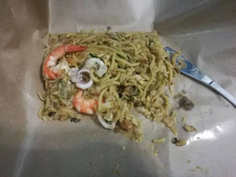 下面这张图是我买的炒面宵夜,新加坡这边我发现好多用这种油纸包裹起来,感觉好神奇。不过这个面本身并不好吃,还是偏甜,个人接受不了。