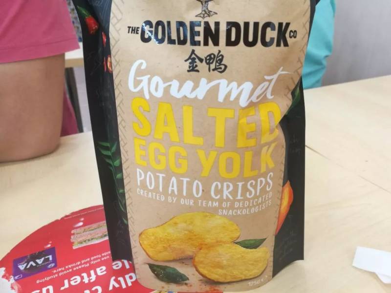 貌似新加坡的咸蛋黄薯片和鱼皮很有名,我在711买的金鸭这个牌子,个人觉得鱼皮比薯片好吃。鱼皮更加脆,有很重的咸蛋黄的味道,薯片的口感个人觉得没有鱼皮好。不过不管是鱼皮还是薯片,价格都挺贵的,一包差不多人民币50元。