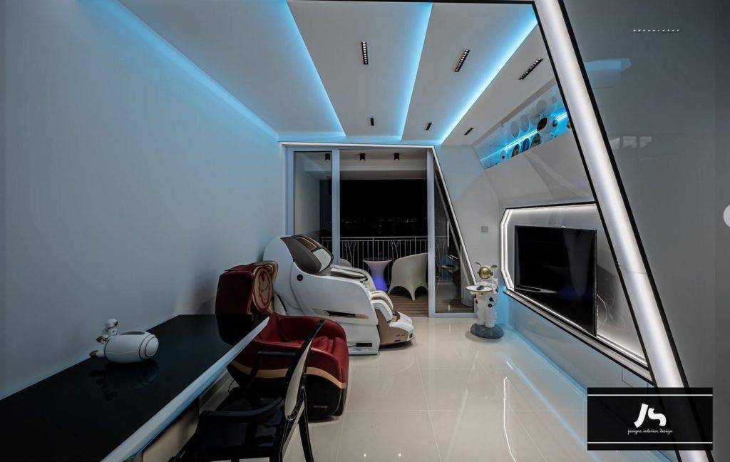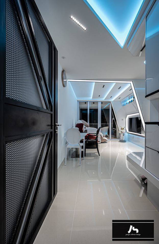 这个是由室内设计工作室Jesigns Interior Designs作品。将位于碧山的四房DBSS二手组屋改造成具有未来,科幻主题的单位。