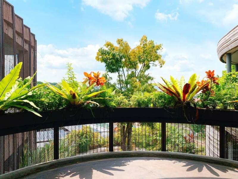 除了教室,其他空间都没有配备空调,采用了大量的天然植物,内部垂直式绿化装饰与屋顶阶梯式阳台加强了花园式的气氛。绿化也减少了太阳的强烈光线和自然热度,从而减少对人工制冷设备的依赖,也缓解了热带的酷暑。