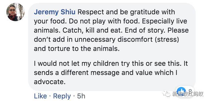 另外,也有网民提到自己看完视频后感到愤怒,并表示无法想像这些螃蟹在夹取的过程中从高处摔落过多少次。她也提到另一个多数网民都有共鸣的点,那就是父母从小教育我们:不要玩弄食物。