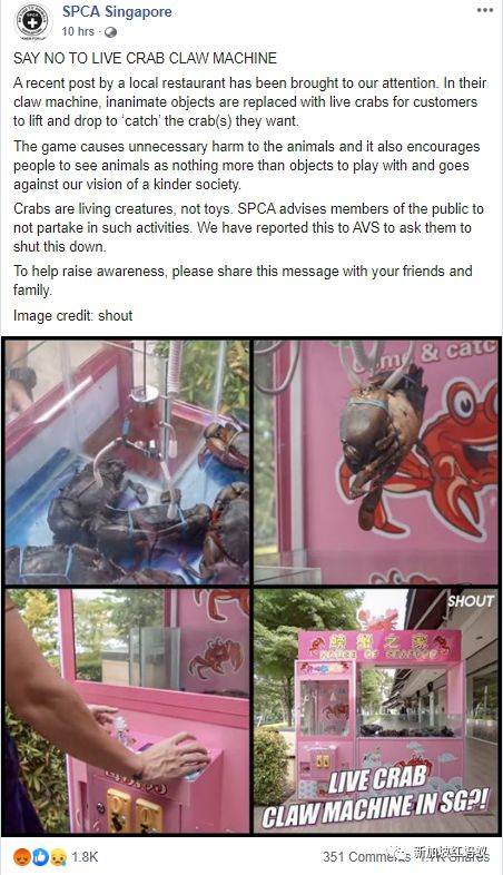 让螃蟹之家始料不及的是,这款看似新颖的商业手法,却在一星期后引起新加坡防止虐待动物协会(SPCA)的关注。