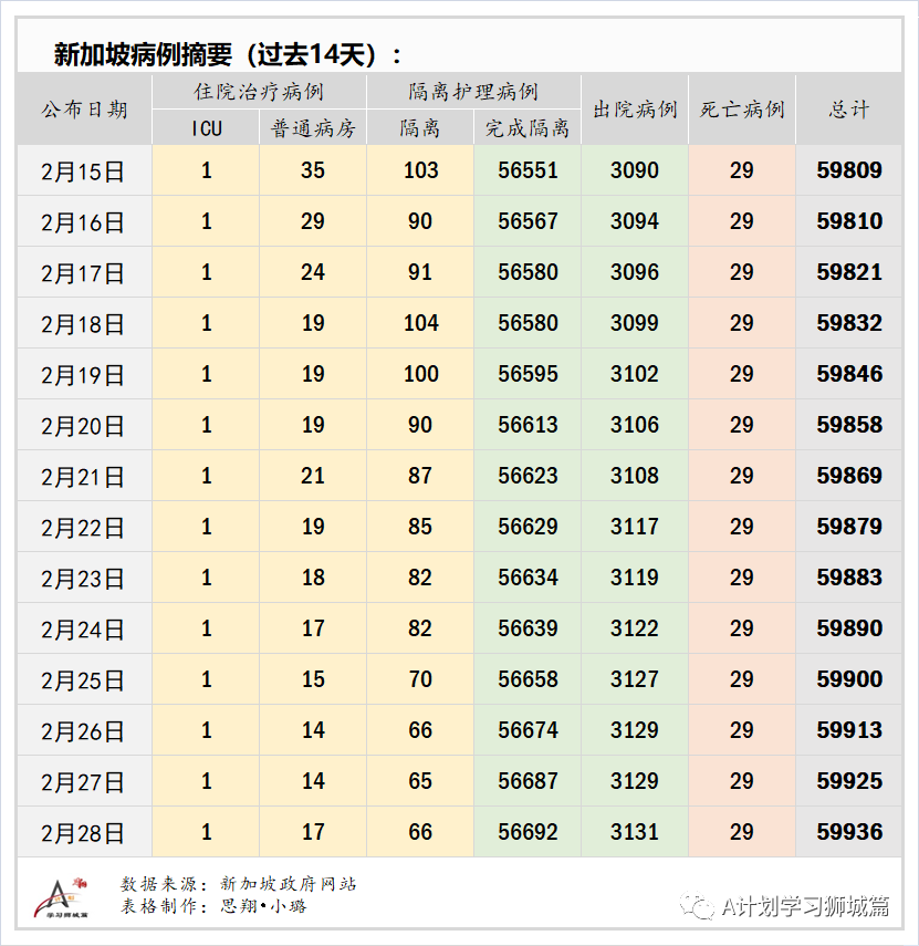 2月28日,出院7人,新加坡累计出院59823人,康复出院率达 99.81%。