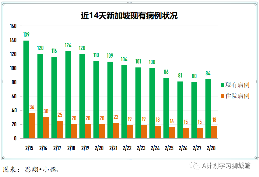 新加坡现有病患84人。其中,病情稳定17人,重症1人,隔离护理66人。