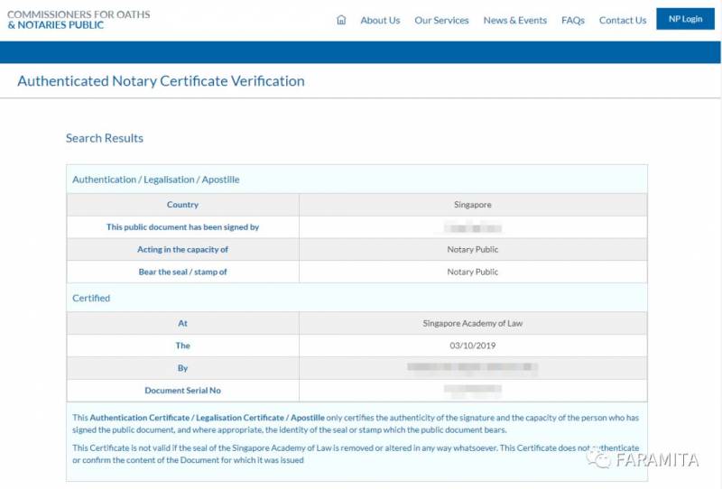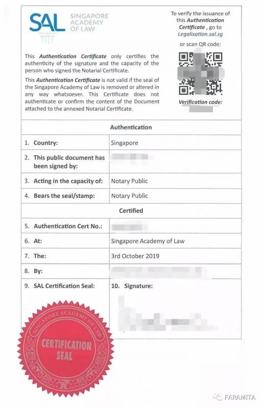 自2019年10月1日起,根据新加坡法律协会 (SAL) 最新规定要求,公证程序有所调整。法律协会要求公证人律师须把公证书上传至协会存档,并到协会柜台办理认证。此后公证书信息可通过法律协会网站查询验证。