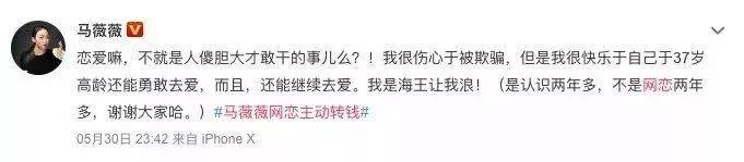 马薇薇自曝网恋被骗