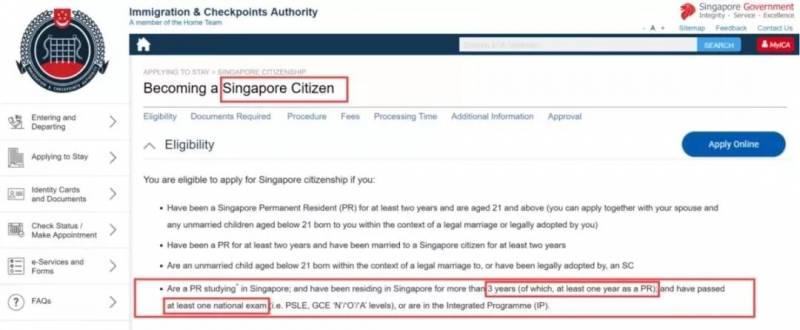(截图自新加坡移民厅官网)