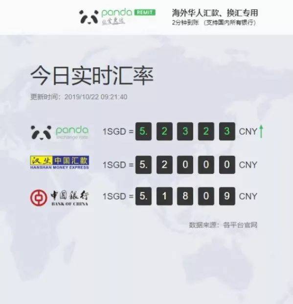 在熊猫速汇,提供实时汇率,并且提供优于银行竞争对手的汇率!