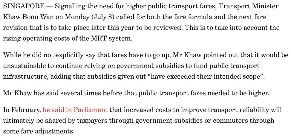 新加坡公共交通票价应考虑捷运系统运营成本上升的因素