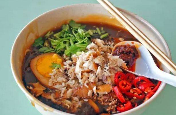 卤面源自中国厦门,1950年代被引入新加坡。卤面看起来并不诱人,但“面”不可貌相:浓稠的酱汁是用猪骨、鸡蛋和香料熬制而成,配上卤肉、鱼饼、卤蛋和五香卷,非常可口。
