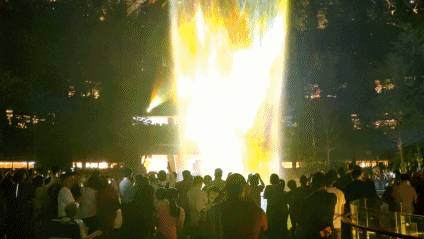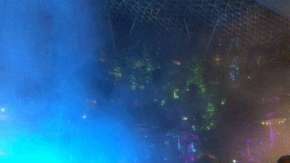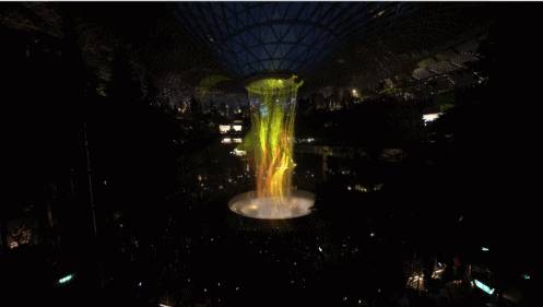 360°的瀑布灯幕技术,结合编程算法,创造出了一个只在电影见过的场景。