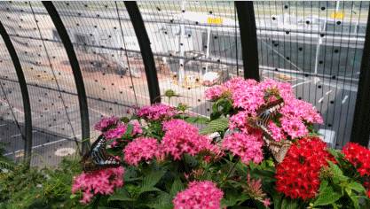 如世界上第一个机场蝴蝶园,就设置在三号航站楼里。蝴蝶是长期生活在这花园中,给旅客们的心灵带来亲近自然生命的感受。