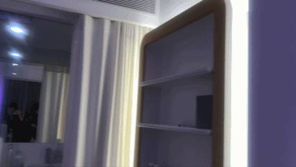 负一层有一圈巨大的透明水幕,水屏障由亚克力板打造。