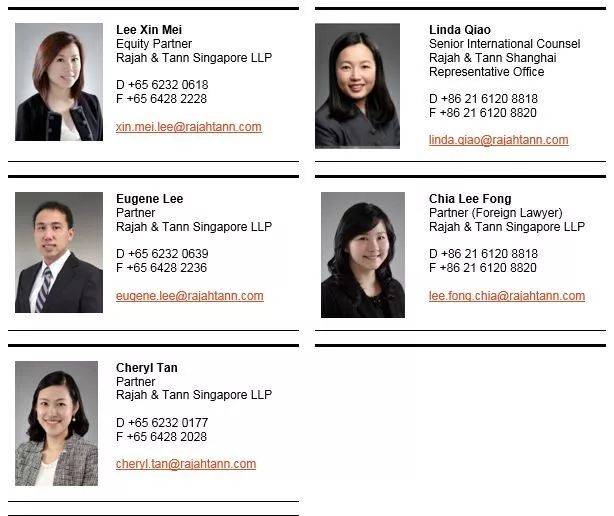根据本所所知及所信,尽管本文件中的信息在撰写时是准确的,但本文件仅供一般性参考,不应被视为本所就某一特定事项作出的专业意见,因为本文件的信息可能不适用于阁下特定的业务和经营要求,请您根据具业务体情况咨询法律意见。欢迎阁下随时与Rajah&Tann Singapore LLP新加坡立杰律师事务所的律师联系。