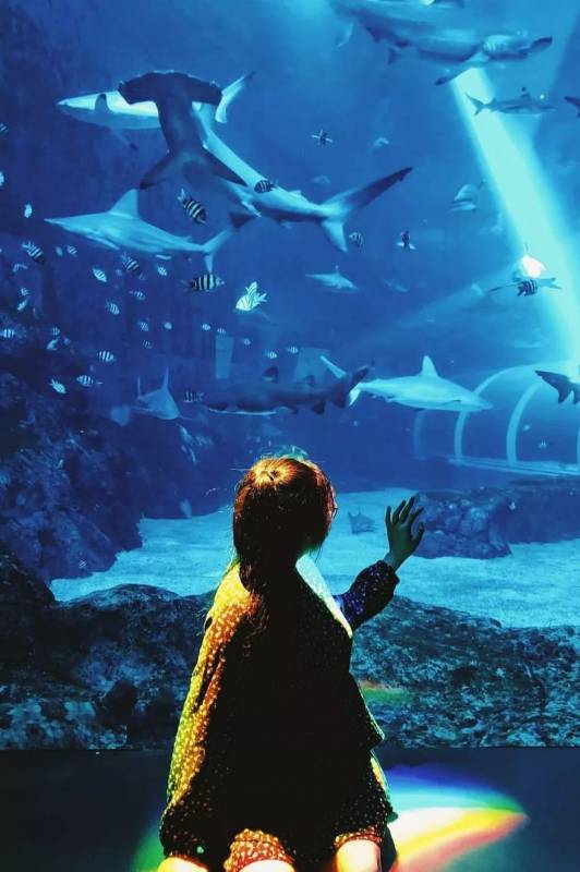 窗前悠闲游过的鲨鱼会让你深感人类的渺小;花纹、斑点、颜色随时变幻自如的水母则是在向你展示海洋的震撼魔力。