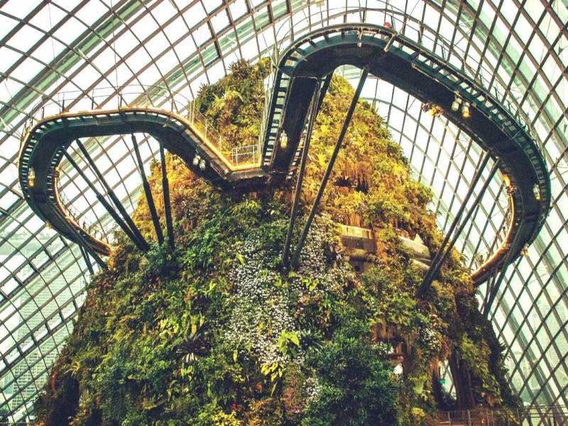 云雾林是是这座花园城市斥巨资打造的两个大型植物冷室之一。室内35米高的山林覆蓋着繁茂的热带植被花草,清爽又不失梦幻的巨型室内瀑布下就是你收获一波Ins风大片的最佳方位。