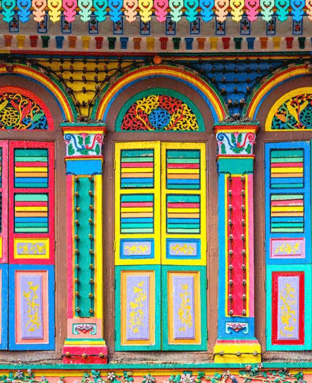 星岛另一个彩色的艺术街区,便是伊斯兰风情十足的甘榜格南。整个街区如同一场暖色系主题的色彩盛宴。当然,最显眼的还是日光下独自闪耀的苏丹回教堂,浓烈的伊斯兰风情下随便一拍都是故事感满满的大片。