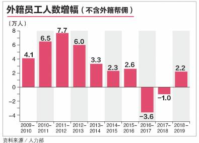 2009年至2019年,外籍员工人数增幅