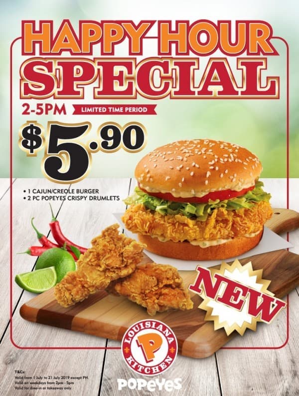 4.POPEYES欢乐下午茶时间 汉堡套餐只要S$5.90