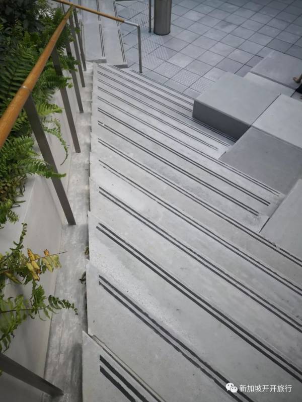 扶手上细心的安装了有盲文数字的识别牌 以及楼梯部分 下台阶之前也设计了凸点 聋 盲 残疾人是社会弱势群体 全社会都在关爱着他们 处处为他们着想 新加坡社会的高度文明 在此也得到一定体现 国家投入大量资金 为他们出行带来方便 说到此处 顺便提及WOHA在新加坡的另一个项目 残疾人社区中心 将在之后为大家进行介绍。
