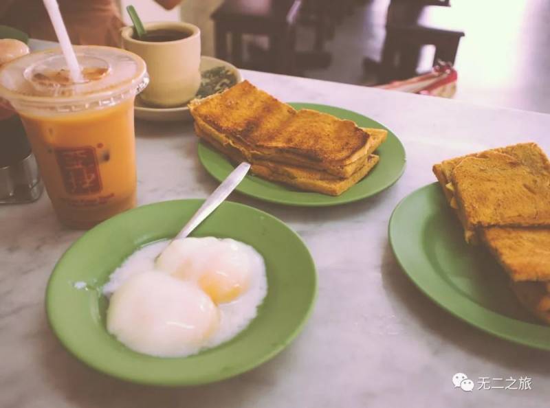 几块用炭火烤制、松脆的咖椰面包,加两颗半熟的滑蛋,再来一杯咖啡,吃完这一顿,新加坡人民的一天就开始了。