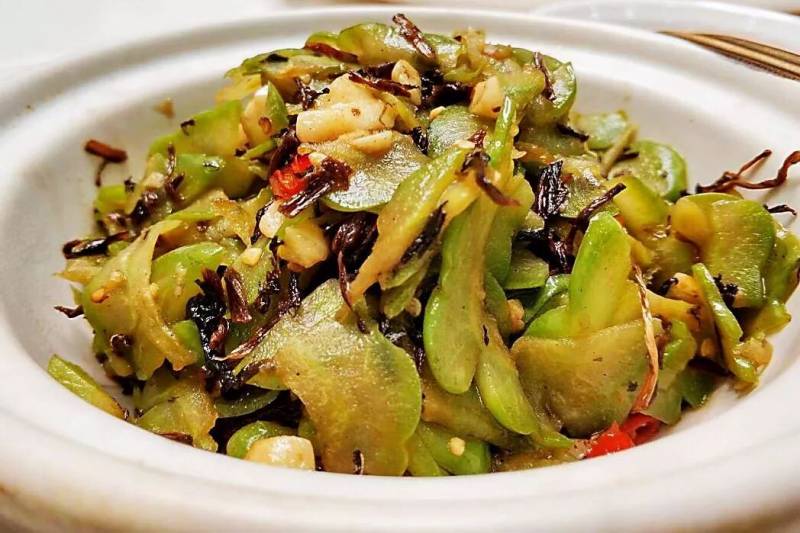 用泉水煮过再用木炭文火烘培干而制成,用来炒腊肉,两种食材互补,笋味绵长、肉味甘美,稍许辣椒爆锅,一下子开了胃,妥妥的下饭菜。
