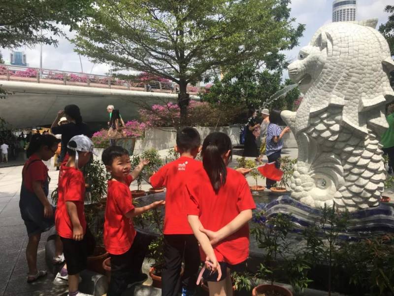 双语老师带着家长和孩子们开启PBL项目式游学,游览鱼尾狮、莱福士登岸遗址、滨海艺术中心、国会大厦、市政厅、百年吊桥、伊丽莎白径,开启新加坡初体验。