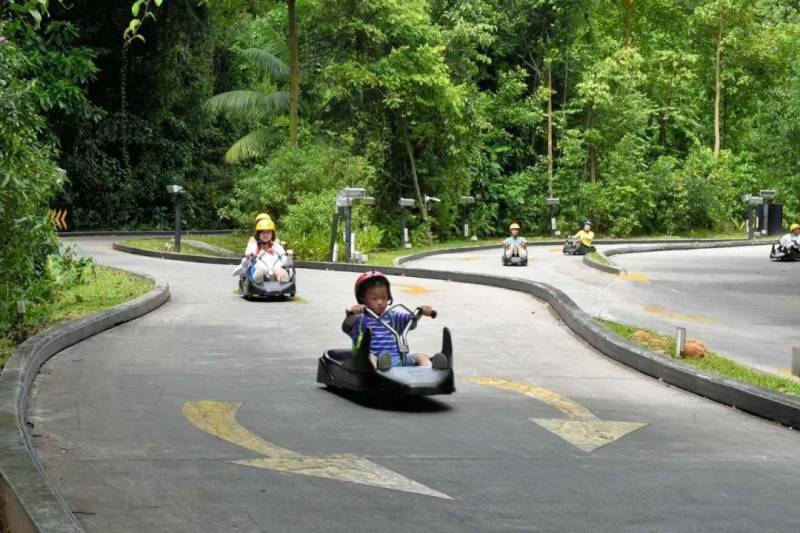 放眼亚洲,目前只有日本和新加坡才有,引进自新西兰,在英比奥山顶我们坐上Luge,整个圣淘沙尽收眼底,从12 层楼的高度沿着650米的蜿蜒跑道往下滑冲,享受乘风滑行的舒畅快意。