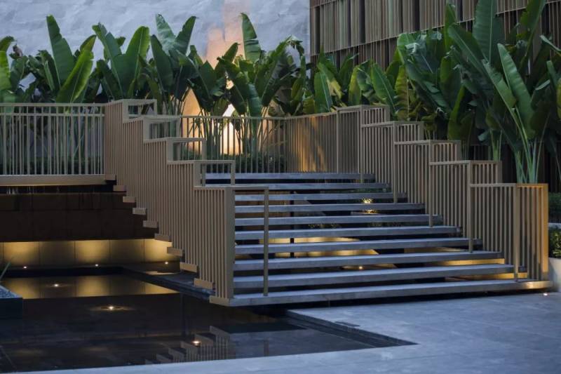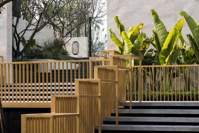 步入社区的那一刻,外部的嘈杂与忙碌都悄然停止,宛如时间本身也停止在了一种平静而流畅的空间里。被隔栅包围的空间,葱郁的热带植物,让人不知不觉中进入了温暖而轻松的度假氛围。