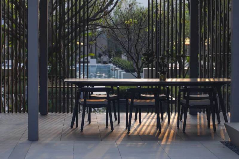 被隔栅包围的空间,温暖而轻松的度假氛围